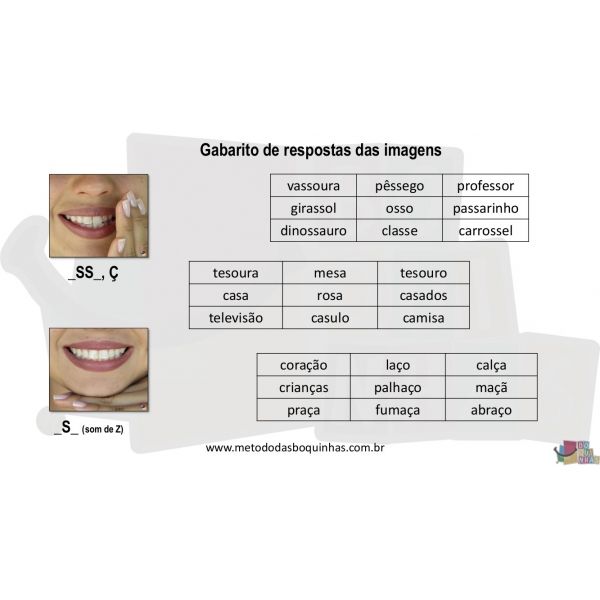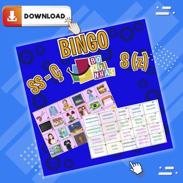 Esse BINGO tem o objetivo de fixar a ortografia de palavras com SS-S (entre vogais, sendo S com som de Z) que embora possuam sons diferentes e boquinhas diferentes, são grafados com a mesma letra S, e Ç, por isso dificultam a aprendizagem e requerem fixação da palavra escrita. Boquinhas trabalha com a compreensão da articulação de cada ocorrência, no caso, SS dígrafo (entre vogais, som de S), S (entre vogais, som de Z) e Ç (som de S). O uso de estratégias lúdicas auxilia tanto o educador como o aprendiz a efetivar essa aquisição.