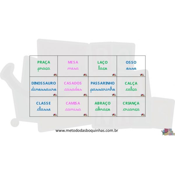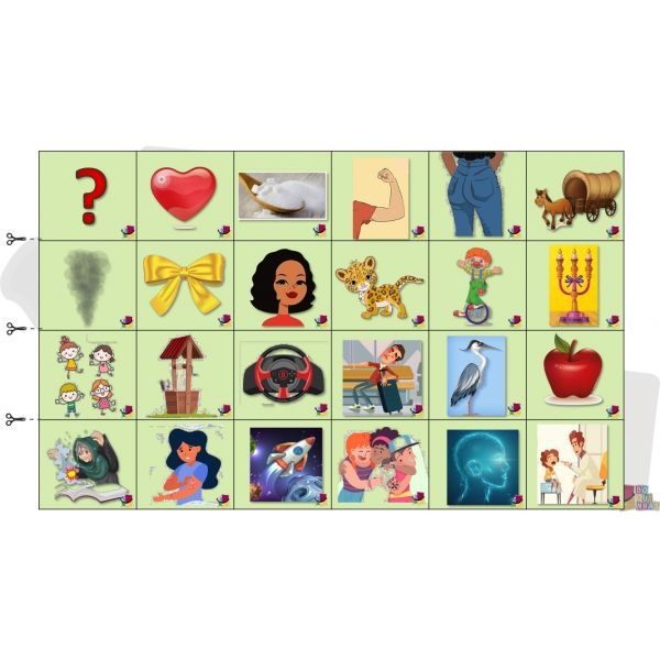 O jogo possui 216 imagens e palavras, distribuídas em 10 cartelas.