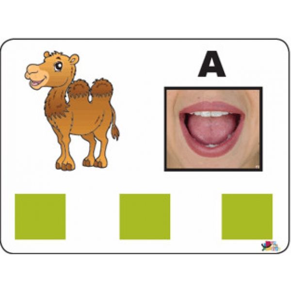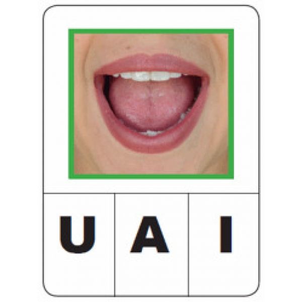 - 64 cartas com imagens e uma boca/letra destacada. A palavra é dividida em sílabas para que a boca/letra destacada seja associada à sua posição silábica correspondente;